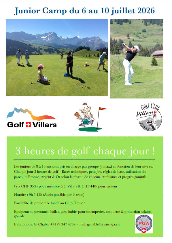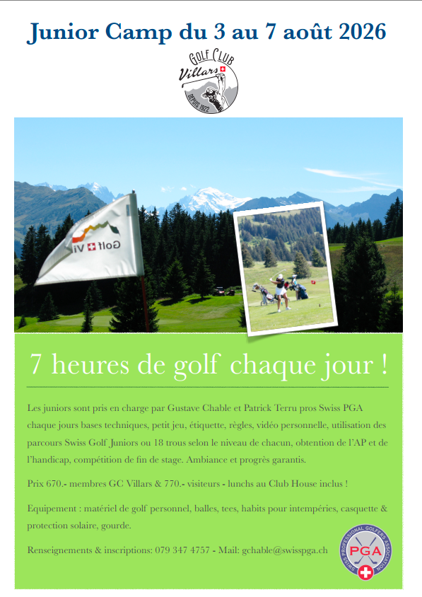 JUNIORS GOLF C. VILLARS, 1884 VILLARS-SUR-OLLON, Banque Cantonale Vaudoise IBAN: CH9700767000S56379862, BIC/SWIFT: BCVLCH2LXXX